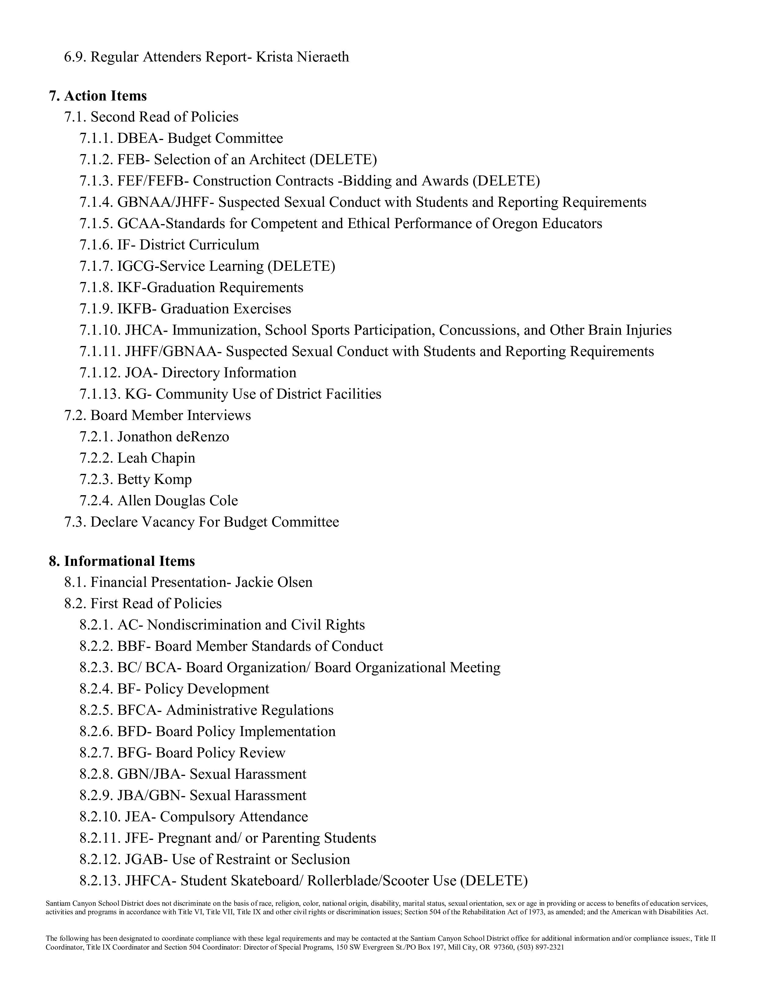 The Board of Directors of Santiam Canyon School District will have their monthly meeting on Wednesday, February 11th, at 6pm at the SES Commons. The meeting agenda is below. You can also find the meeting agenda and attachments, as well as the livestream link, at the Santiam Canyon School District (SCSD) BoardBooks website, found at the following link: https://meetings.boardbook.org/Public/Organization/3310.